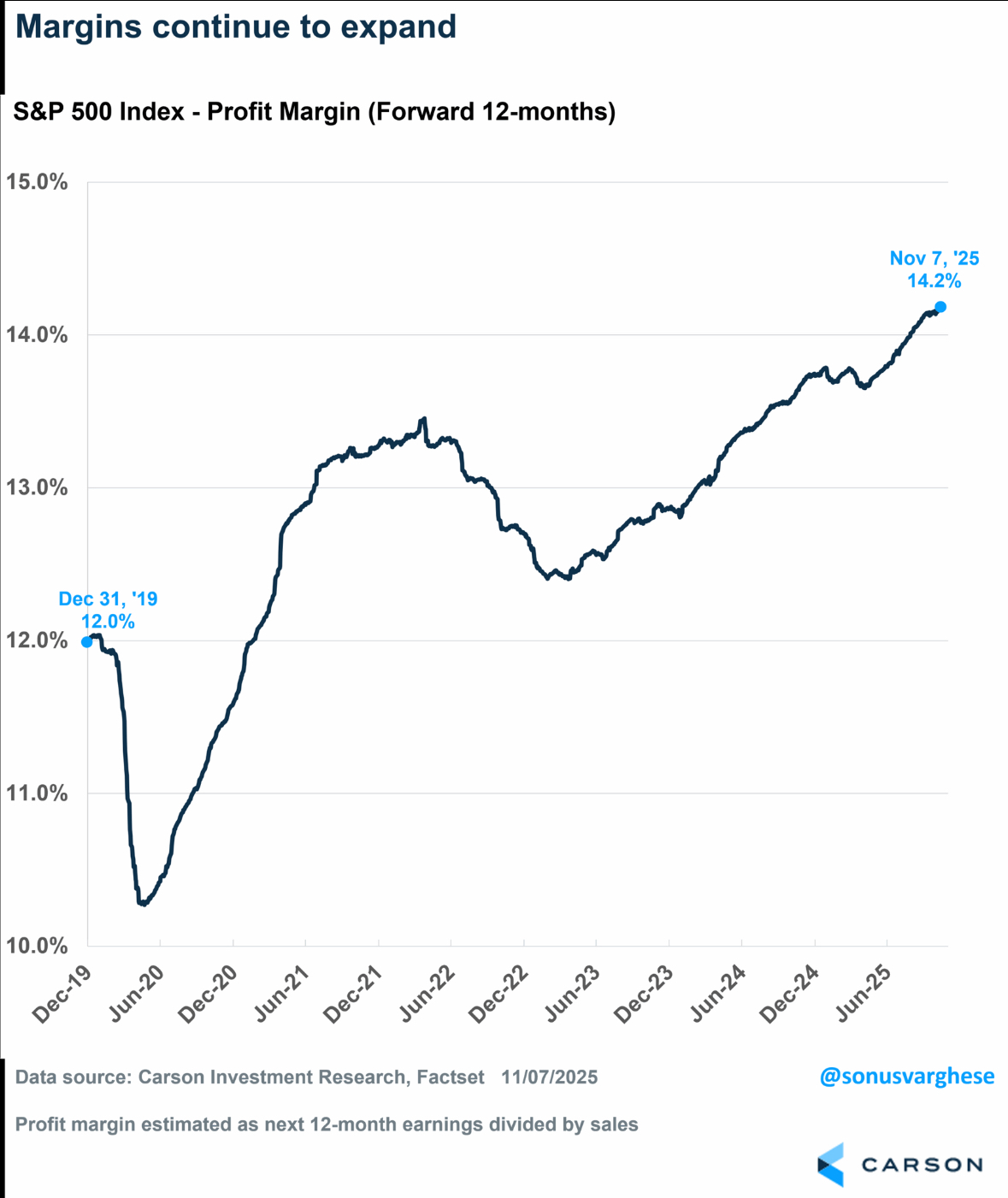 The stock market moves on expectations, not what’s happening today. Throughout 2025, investors looked ahead and saw stronger corporate earnings and healthier profit margins over the next 12 months.